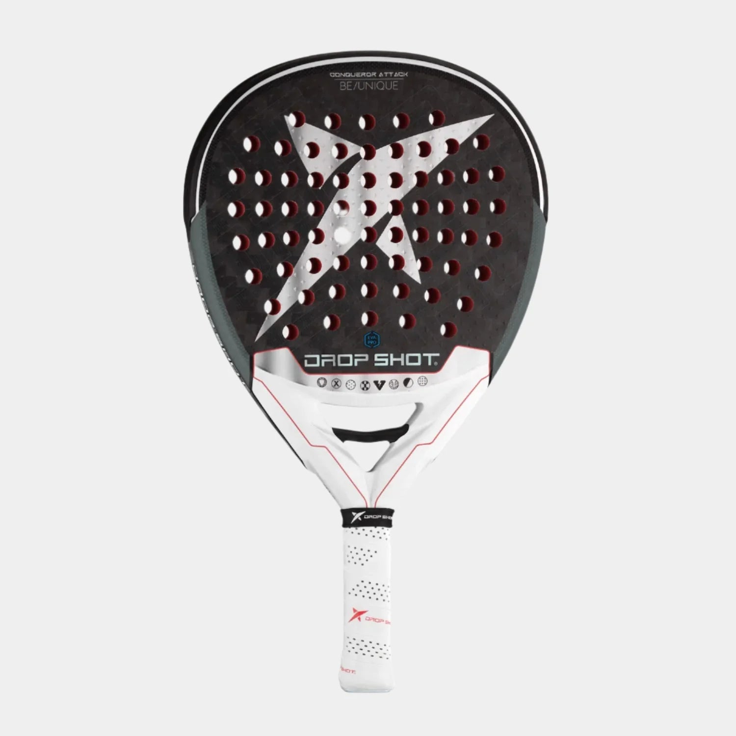 El núcleo de la pala está fabricado con goma Eva Pro , cuya principal característica es la sensación de control. Con una alta velocidad de bola, se consigue mayor potencia. Las caras incorporan el sistema Smart Holes , un sistema de distribución de agujeros curvos y progresivos que mejora el desarrollo de la fuerza mecánica en el impacto, lo que ayuda a añadir efecto a la bola y reducir las vibraciones. El sistema 3D Face de las caras presenta una textura romboidal tridimensional, diseñada exclusivamente por Drop Shot, para potenciar el efecto de la bola en golpes que requieren el máximo impacto, especialmente diseñado para jugadores agresivos.