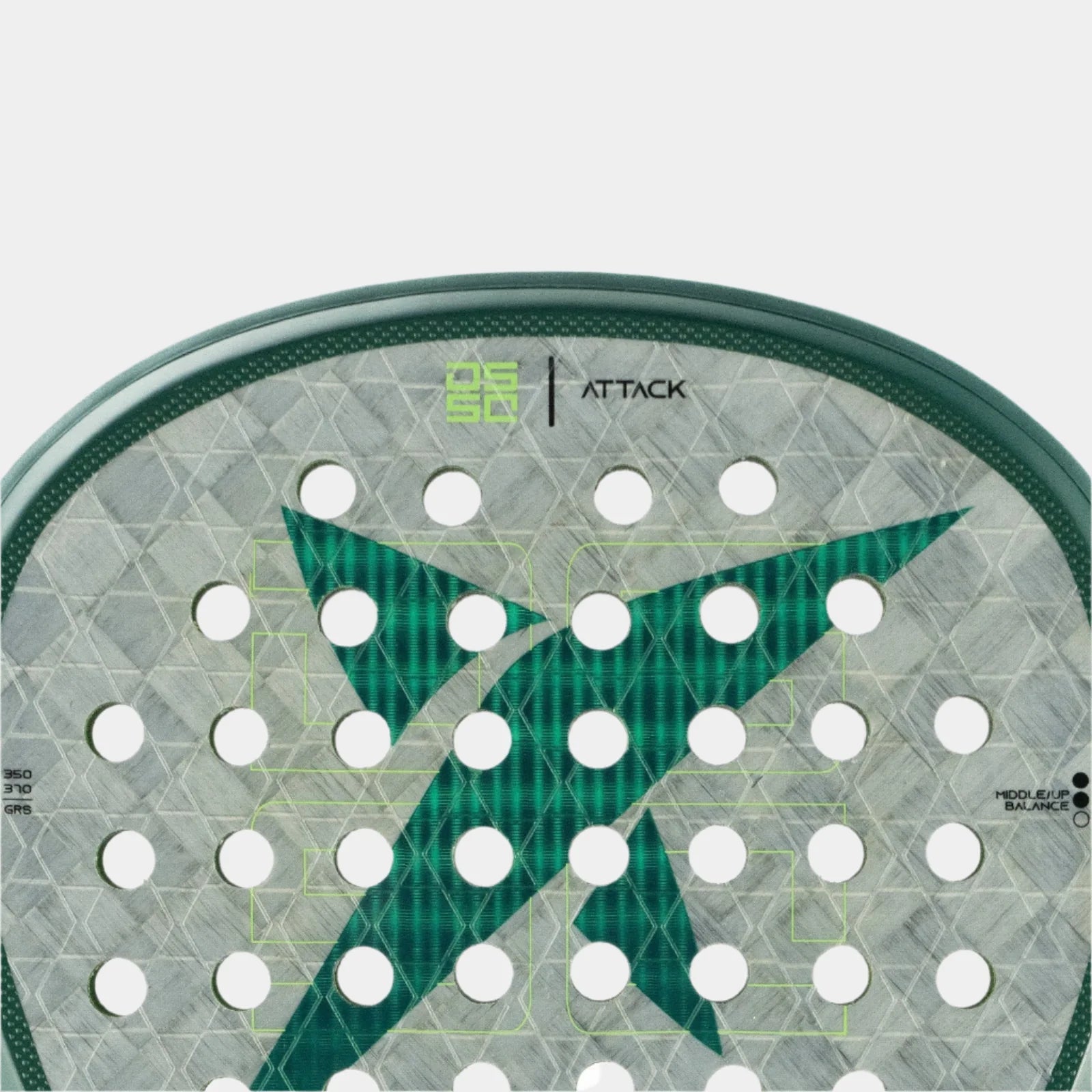 Diseñada con un molde en forma de lágrima, ofrece un punto dulce ligeramente por encima del centro, con un equilibrio medio-alto dirigido hacia la cabeza de la pala. En su núcleo utiliza goma Eva Pro, reconocida por aportar una sensación de control junto con una alta velocidad de bola para maximizar la potencia. Las caras están fabricadas con Carbono 18K Textreme, un carbono bidireccional de 18.000 filamentos por hilo, que asegura una superficie plana, ligera y resistente.