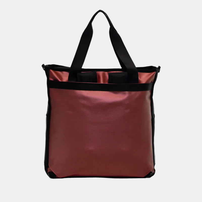El bolso Drop Shot Caima Rojo se caracteriza por su acabado metálico, lo que lo convierte en un accesorio único y con gran personalidad. El bolso luce detalles en negro, incluyendo el nombre y el logotipo de la marca estampados.