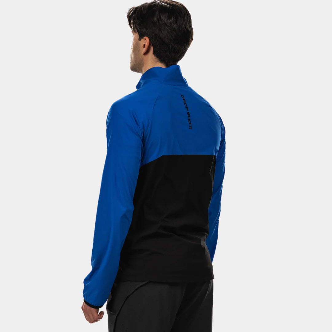 Este modelo incluye una cremallera central frontal invisible y luce un diseño moderno y funcional en una combinación de tonos azules y negros, creando un look casual pero atemporal, perfecto para jugadores que buscan estilo y rendimiento. La impresión en silicona 3D del nombre y el logotipo de Drop Shot le aporta carácter y valor.