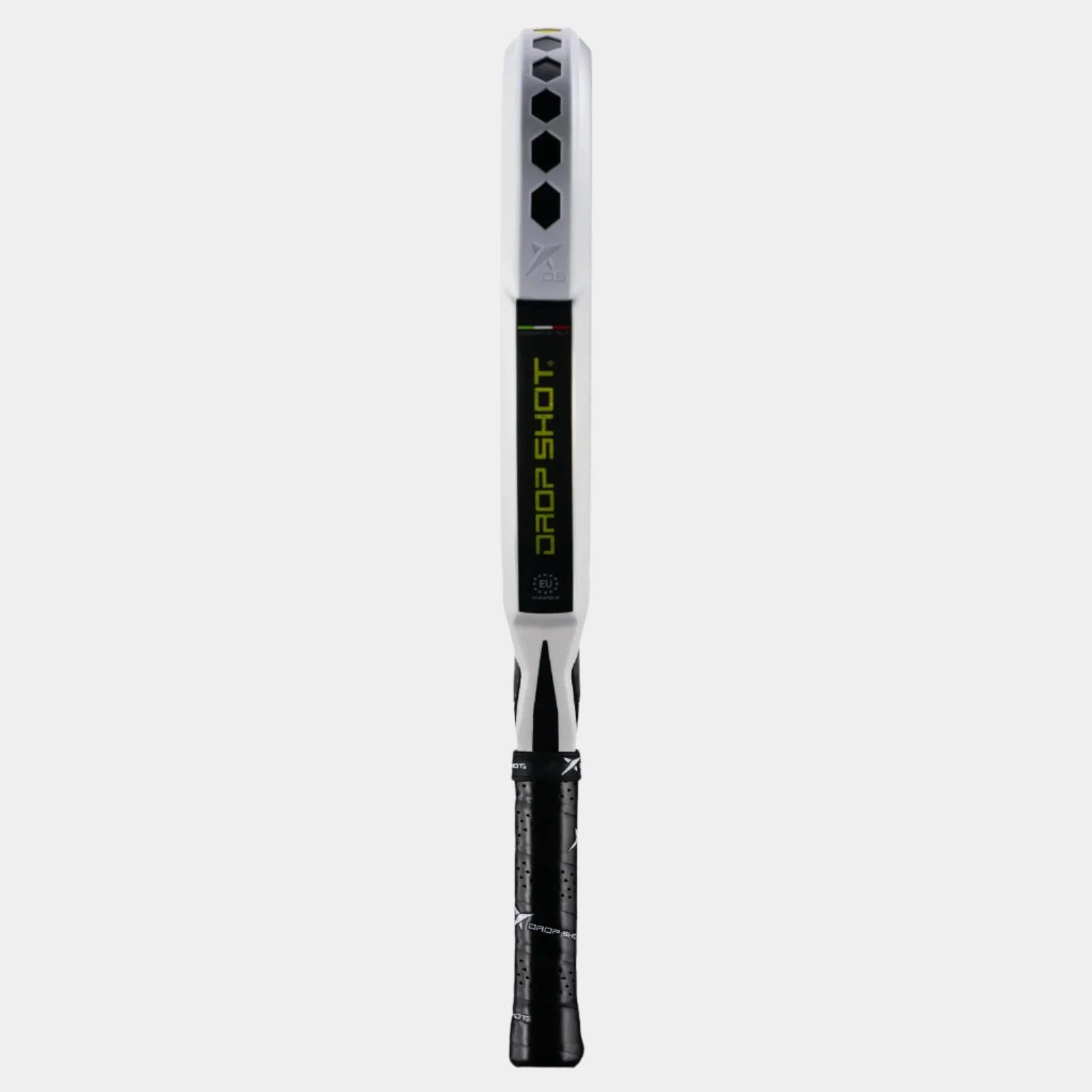 La línea de nuestro jugador Lucas Campagnolo ha sido todo un éxito esta temporada, y no es de extrañar, ya que su diseño y estilo llaman la atención de inmediato. El amarillo predomina en toda la pala, complementado con detalles en negro y rojo que le aportan un valor añadido. El logotipo de Drop Shot está estampado sobre la silueta del logotipo de Campa. Un estilo juvenil, atrevido y con carácter.