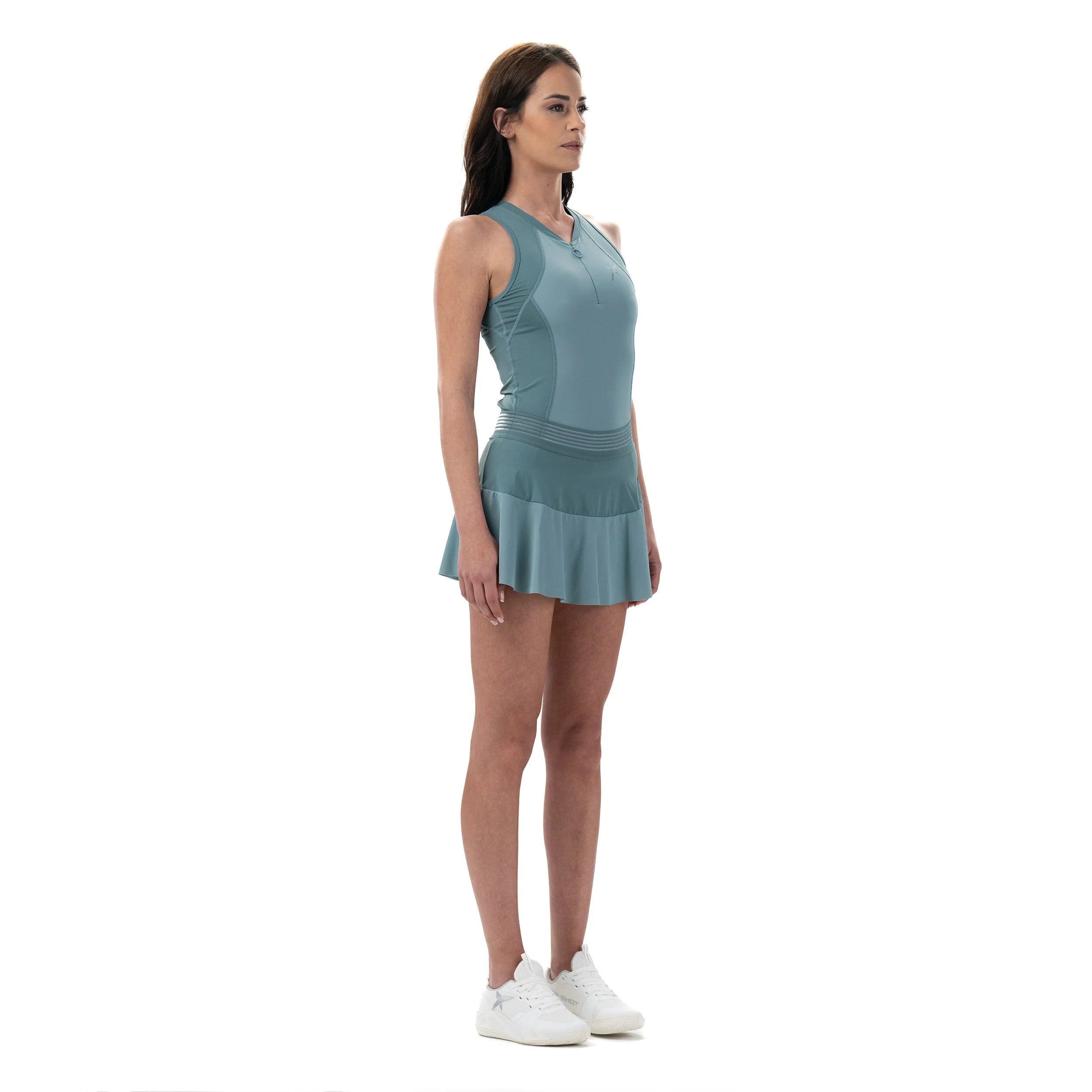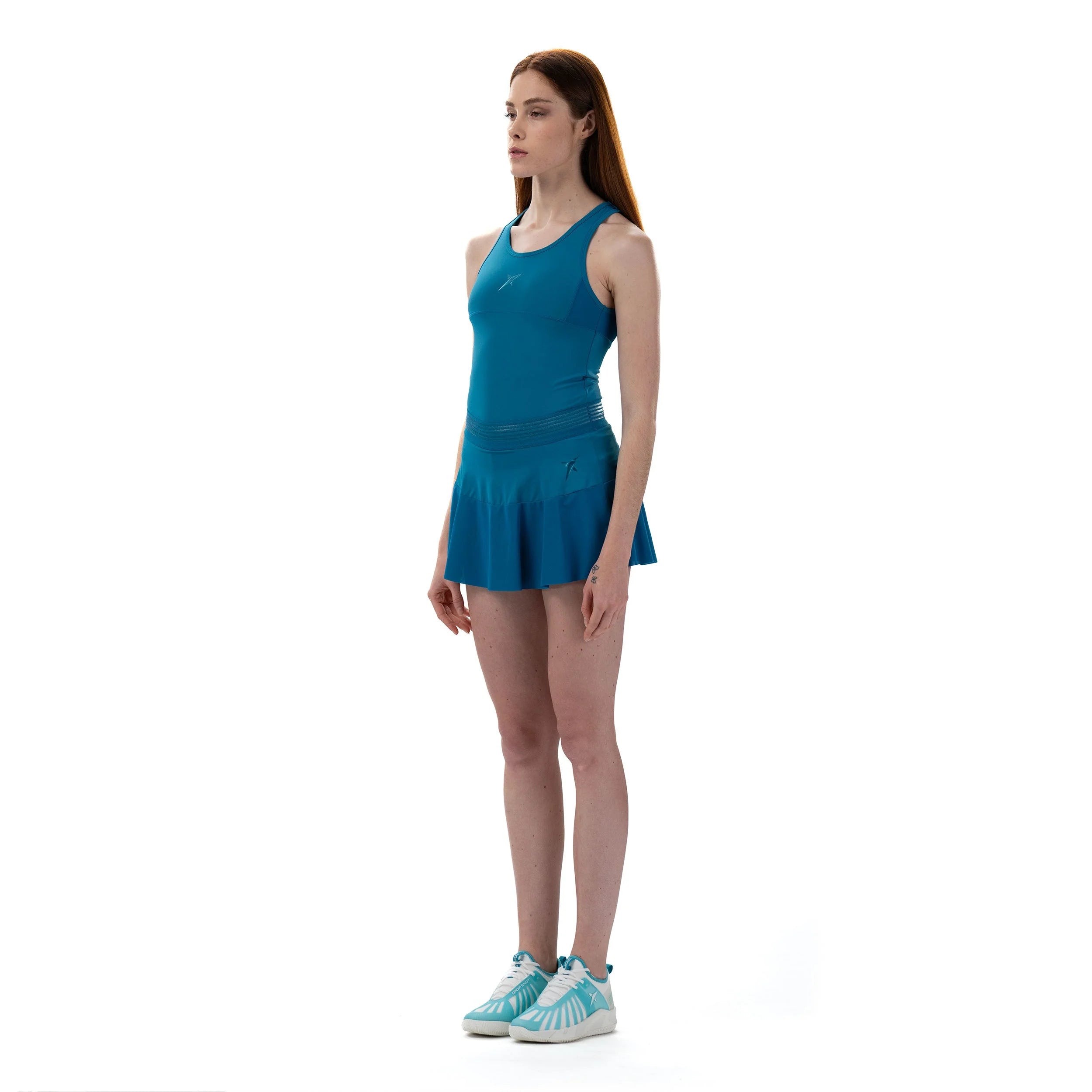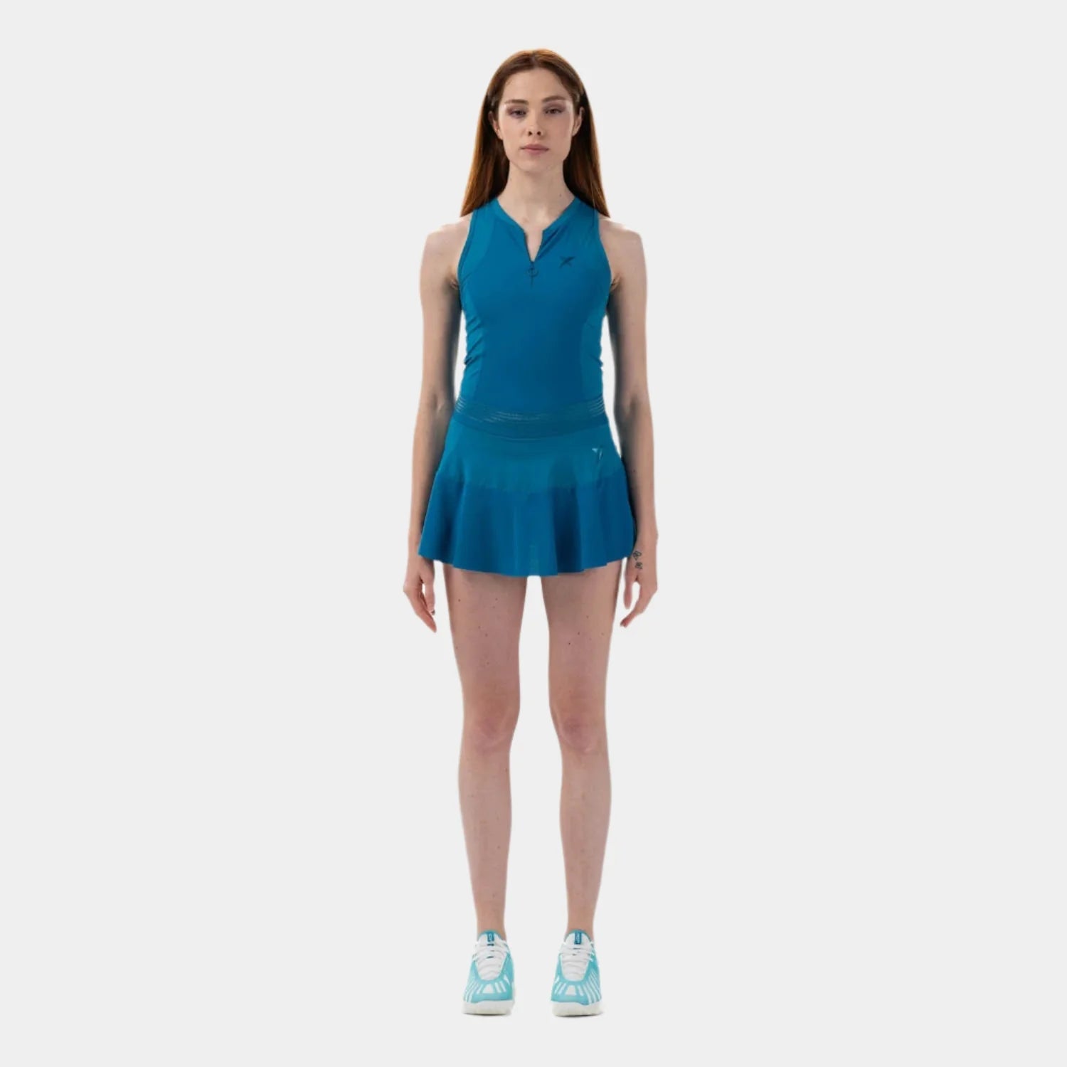 La falda Drop Shot Brisa está disponible en dos colores: azul eléctrico y verde azulado . Sin duda, los detalles la hacen única, ya que el logotipo de Drop Shot está estampado con un acabado de espejo que llama la atención a primera vista.