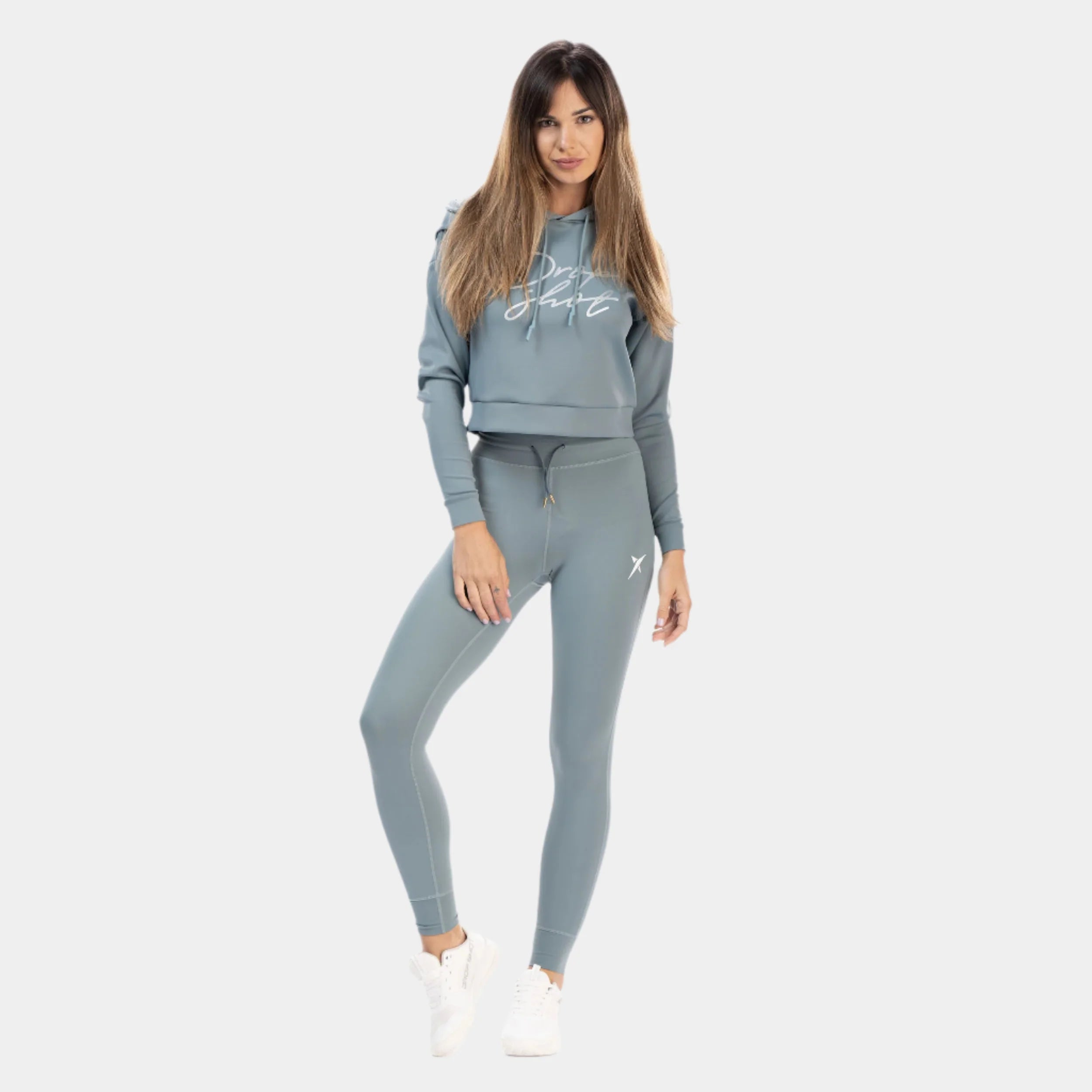 En cuanto al diseño, los leggings Musgo cuentan con una cinturilla elástica ajustable con cordón, que proporciona un ajuste y una sujeción perfectos. Dos puños en la parte inferior proporcionan un ajuste ceñido alrededor de los tobillos. Elegimos un tono verde aguamarina, uno de los colores de tendencia para esta temporada de otoño-invierno. Los leggings lucen el logotipo de Drop Shot impreso en blanco mediante impresión 3D de goma.