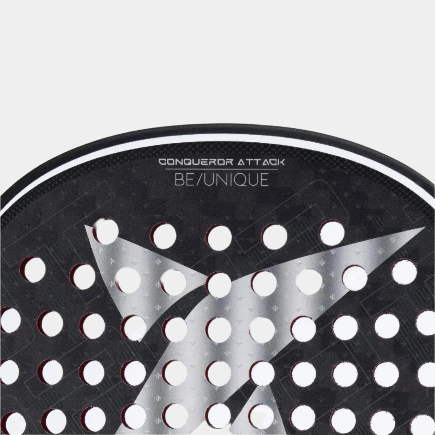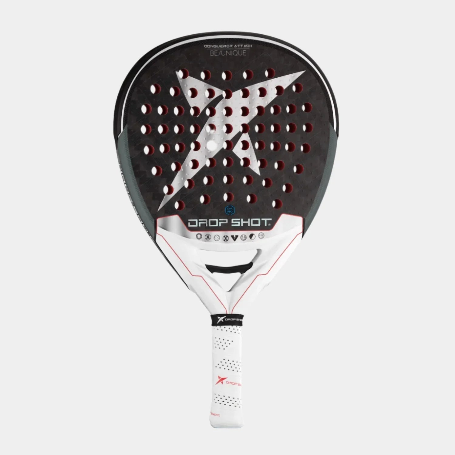 La pala Drop Shot Conqueror Attack está especialmente diseñada para jugadores avanzados que buscan control absoluto y precisión en su juego. Este modelo presume de un juego excepcional y una evolución constante en busca de la perfección. Su diseño en forma de lágrima mantiene el punto dulce ligeramente por encima del centro.