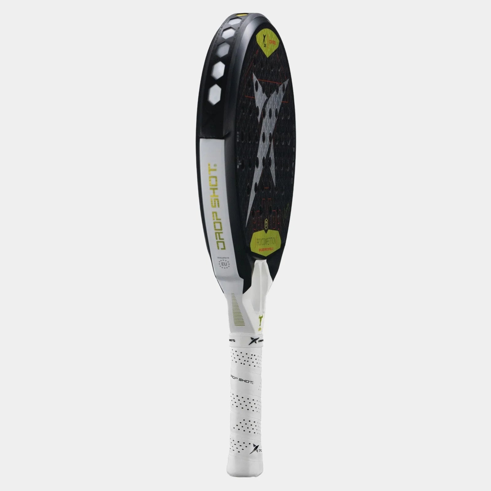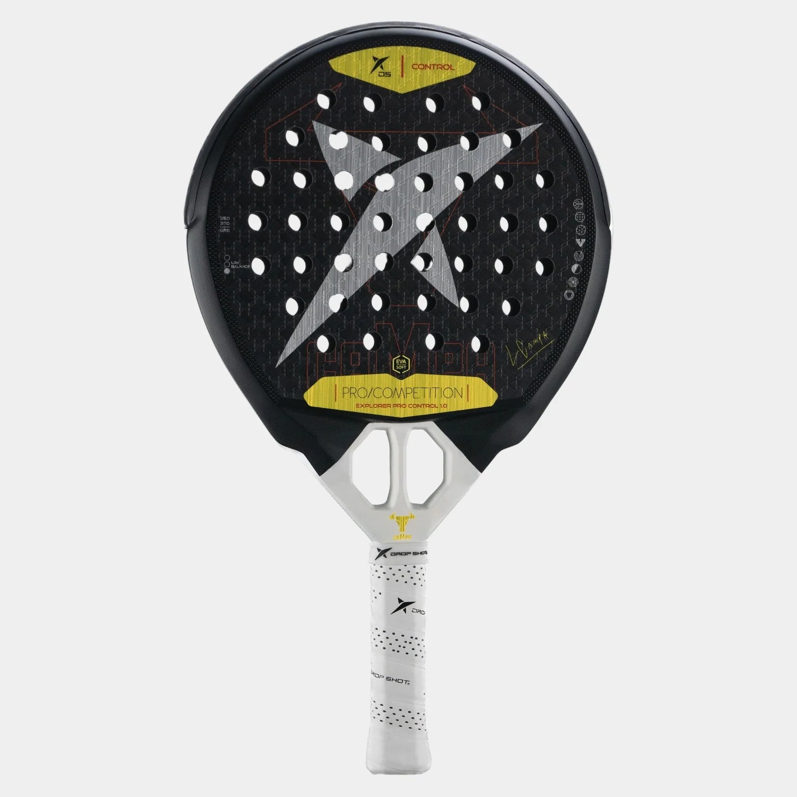 Ahora podrás escogerla pala que mejor se adapte a tu juego sin renunciar a tener la de tu jugador preferido. La colección 2025 engloba la línea Explorer Pro de nuestro jugador Lucas Campagnolo dividida en tres gamas según el nivel de juego. La cuenta con la Pala Drop Shot Explorer Pro Control 1.0, una pala de nivel medio que gracias a su forma y la goma que la compone se posiciona como una pala de potencia.