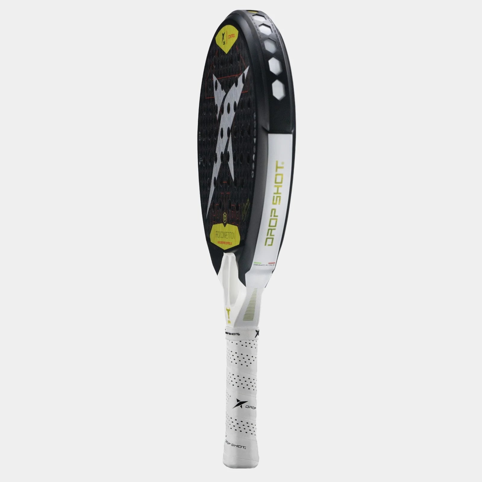 Ahora podrás escogerla pala que mejor se adapte a tu juego sin renunciar a tener la de tu jugador preferido. La colección 2025 engloba la línea Explorer Pro de nuestro jugador Lucas Campagnolo dividida en tres gamas según el nivel de juego. La cuenta con la Pala Drop Shot Explorer Pro Control 1.0, una pala de nivel medio que gracias a su forma y la goma que la compone se posiciona como una pala de potencia.