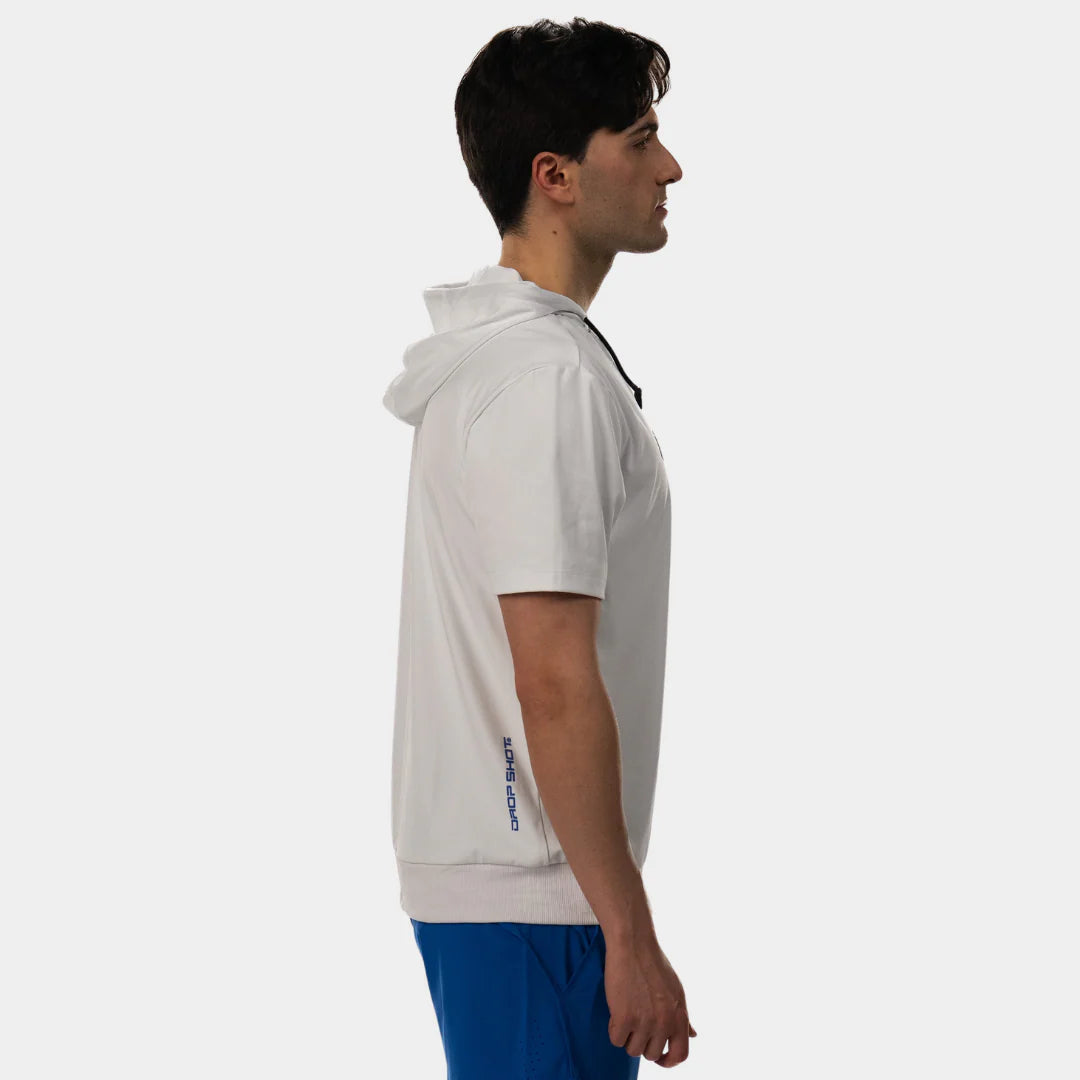 Esta prenda ha sido desarrollada en colaboración con nuestro jugador profesional Jon Sanz , quien se centró en las características clave que debe ofrecer una sudadera con capucha para satisfacer las exigencias del pádel competitivo.